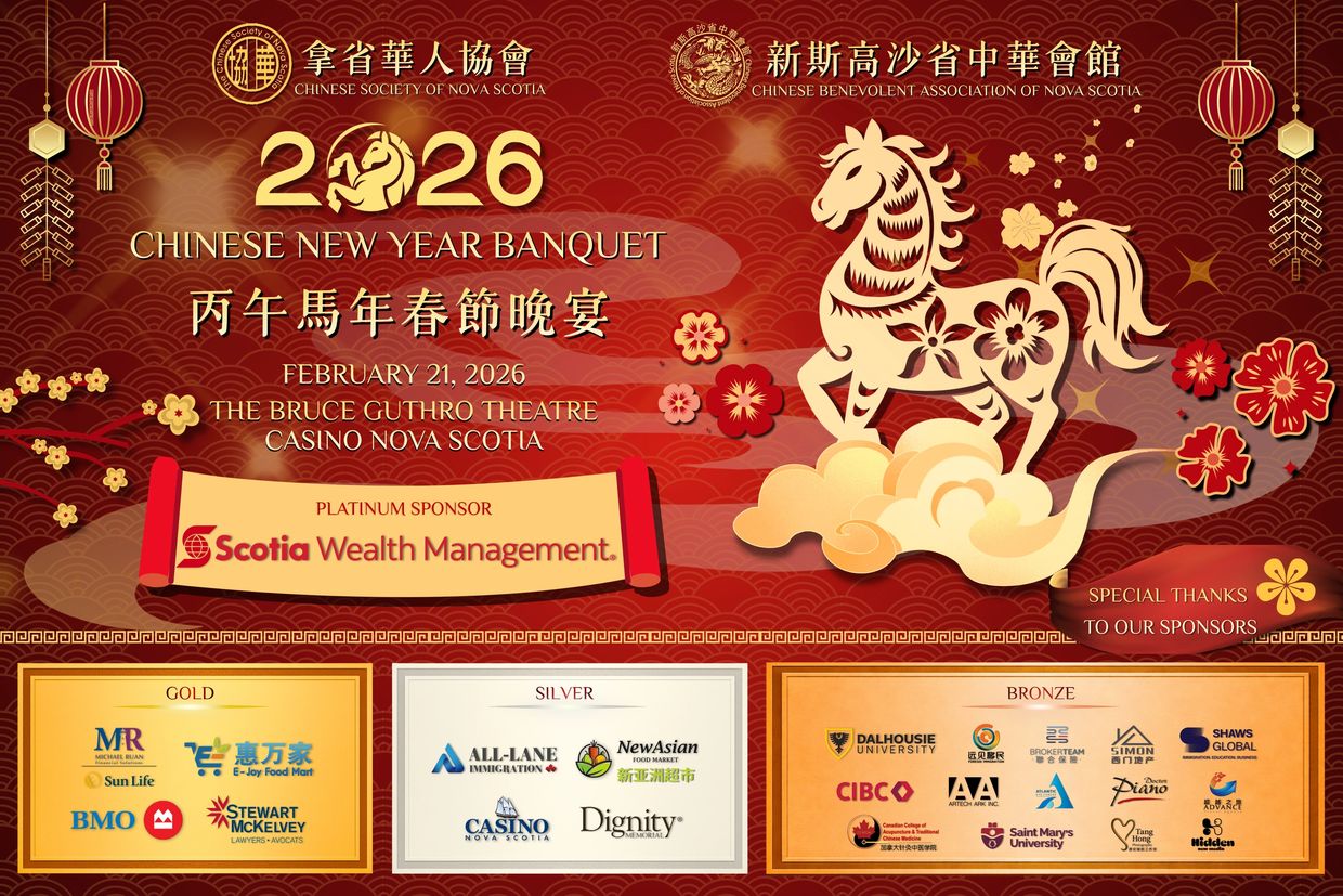 This Lunar New Year, come celebrate health, happiness, and prosperity with us. Reserve your spot now and be part of an evening filled with unity, tradition, and shared hopes for the year ahead! Warmest wishes for a joyous and prosperous Lunar New Year from the Chinese Society of Nova Scotia!